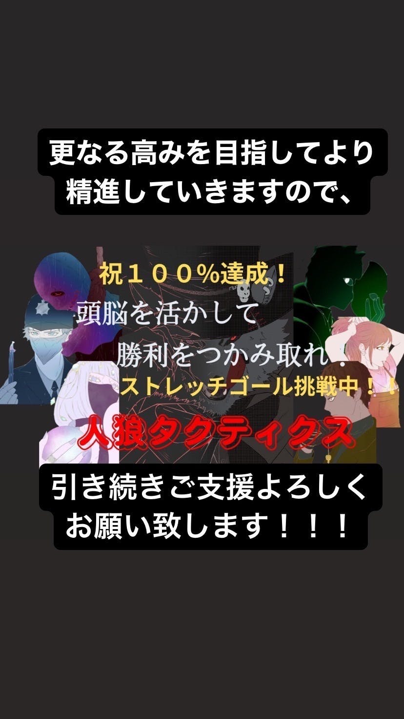 2023/07/02 14:04こんにちは!人狼タクティクスのクラウドファンディング運営者のかっさんです。皆様の熱いご支援をいただきまして、昨日目標額である200,000円を集めることができました。ご支援、拡散等のご協力をいただいた皆様ありがとうございました。これほど早くに目標額を達成できましたことに、正直驚いています。それと同時にご支援をいただいた皆様のご期待に応えるべく、より良い商品を作り出そうという意欲が心の底から湧いてきております。これ以降もストレッチゴールを設定し、更なる高みを目指す努力を続けてまいりますので、引き続きご支援のほど宜しくお願い致します。 もっと見る