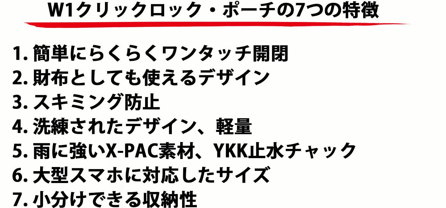 今回のプロジェクト「W1クリックロック・ポーチ」は、前作2プロジェクトの商品を踏襲しつつ、より便利に使いやすく改良しました。とても格好良く、機能的なスマホポーチとなっておりますので、気に入っていただけると思いますので、ぜひご支援のほどよろしくお願いします!