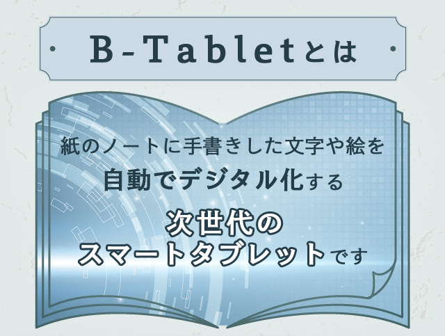 『B-Tablet』は専用ペンを使用して"紙に"手書きした内容を、自動でパソコンやスマホに"デジタル化"し保存できるスマートタブレットです。
