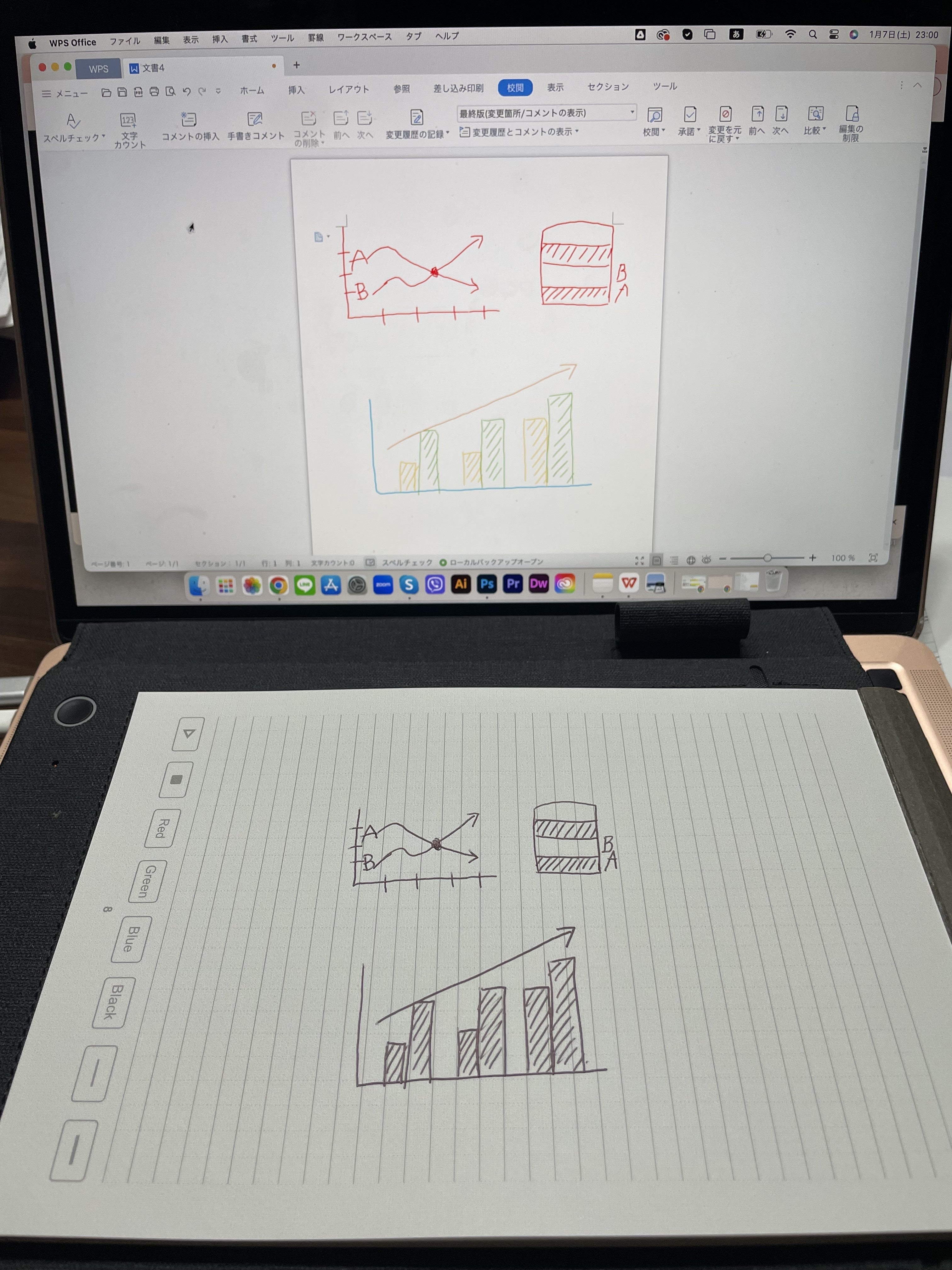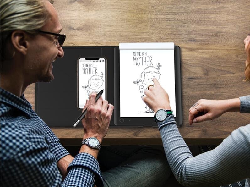 使い方はとても簡単。タブレットの電源を入れ、お好きな紙をタブレットの右側にセットし、専用ペンで紙に手書きするだけです。