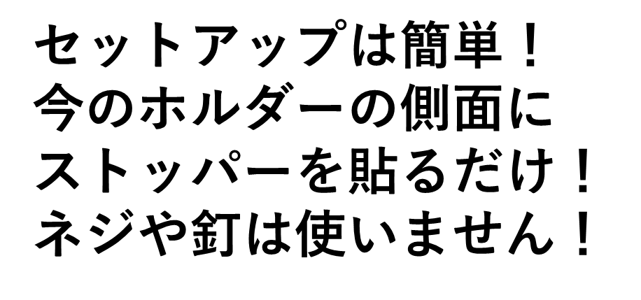 2)ストップ板をストッパーに差し込み(抜き差し可能)、ホルダー側面上部にカバーがペーパーを押さえない位置に両面テープを剥がして貼ります。(ストッパーは左右どちらでも構いません)