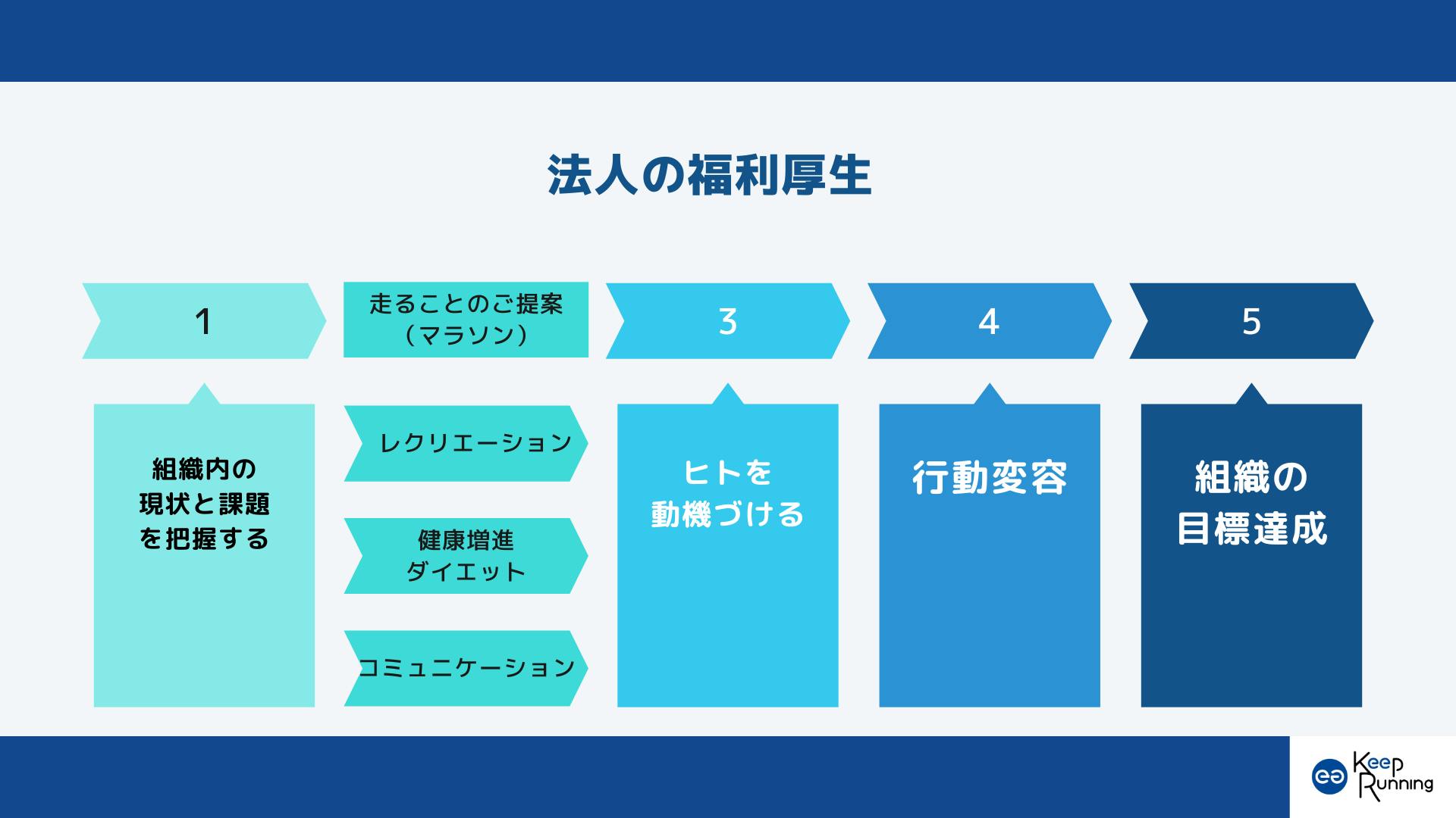 走ることを通じて、コロナ渦で薄れたコミュニケーションを強化し、従業員の行動変容へとつなげて、組織の活性化へと貢献していきます。