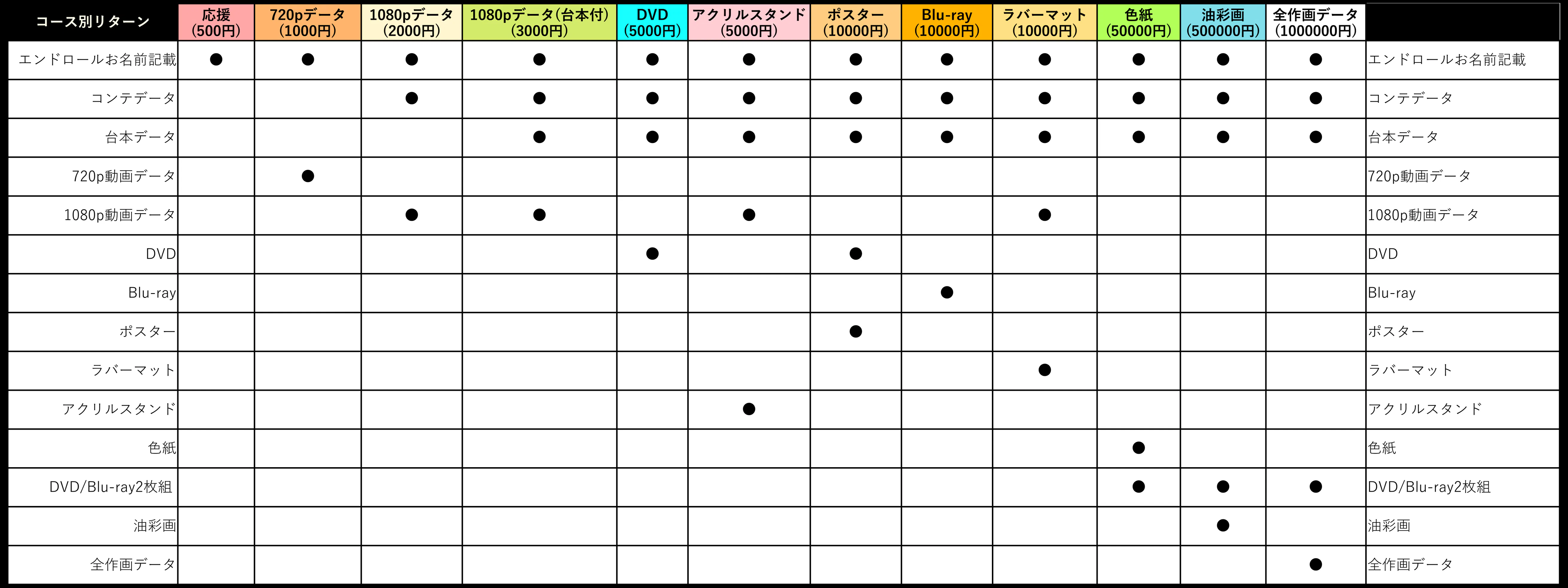 リターンについて『色紙コース』の「DVD」、『油彩画コース』『全作画データコース』の「Blu-ray」を、それぞれ「DVD/Blu-ray2枚組」に変更いたします。