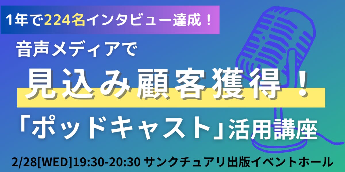 【サンクチュアリ出版主催】1年で224名インタビュー達成!音声メディアで見込み顧客獲得!「ポッドキャスト」活用講座のご案内