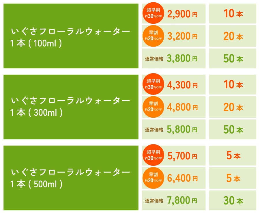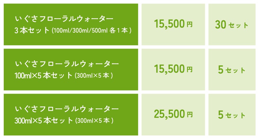この特別チケットでご予約された方には、いぐさフローラルウォーターをかけ水としてご用意します。