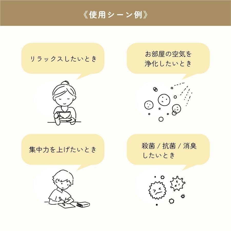 天然のルームスプレー・抗菌スプレーとしてお部屋や寝具、履き物、和室などにご使用いただけます。