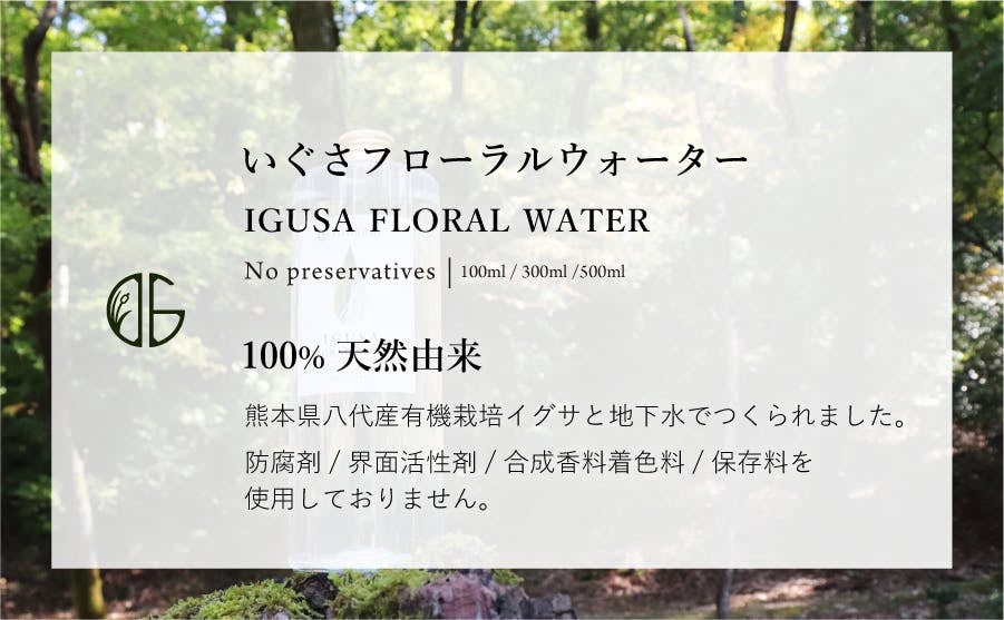 熊本県産・農薬を使わず栽培されたい草から抽出した100%天然由来のフローラルウォーターです。