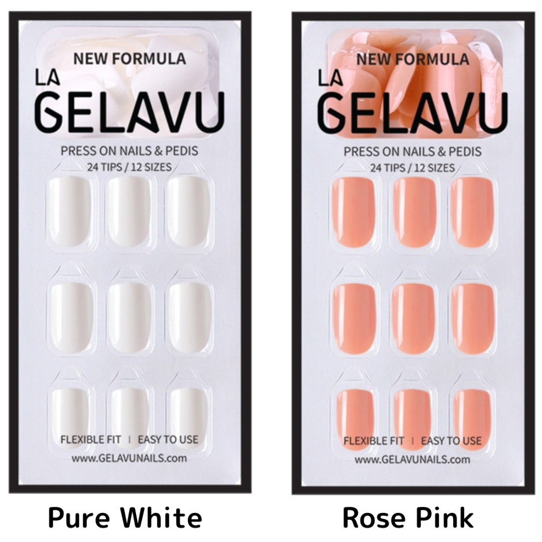 「GELAVU フレキシブル プレスオン ネイルチップ」です。100% 熱可塑性ポリウレタン (TPU) 製。