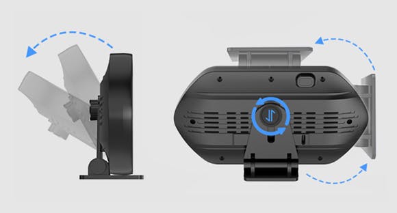 ホルダーを回転することで取り付け方法を変更することもできます。ダッシュボードだけでなく、フロントガラスに取り付けることも可能です。