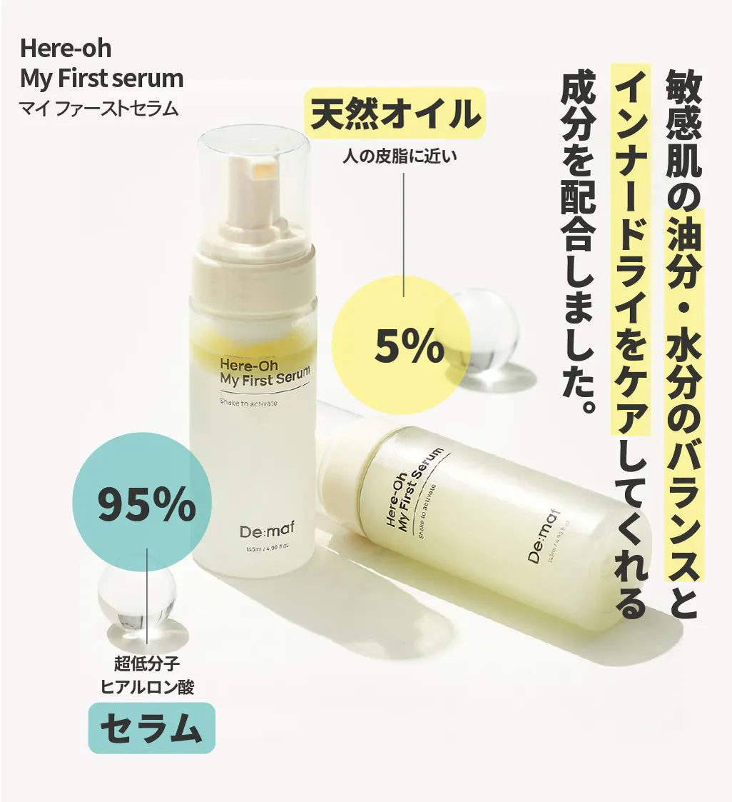 はい。マイファーストセラムは乾燥肌/オイリー肌/インナードライ肌など様々な肌タイプ、そして二層構造のセラムを始めて使う方や敏感肌の方にも無理なく使えるようにオイルの配合を5%にしています!二層構造のセラムに慣れてきて効果を感じたあとはオイルの量を増やしていけばさらにインナードライに効果を感じることができると思います。どのオイルを追加しても問題ないですが、オイルの成分が違うと泡が立たない場合がありますのでできれはDemafのmアイグローレシピを追加することをおすすめします。
