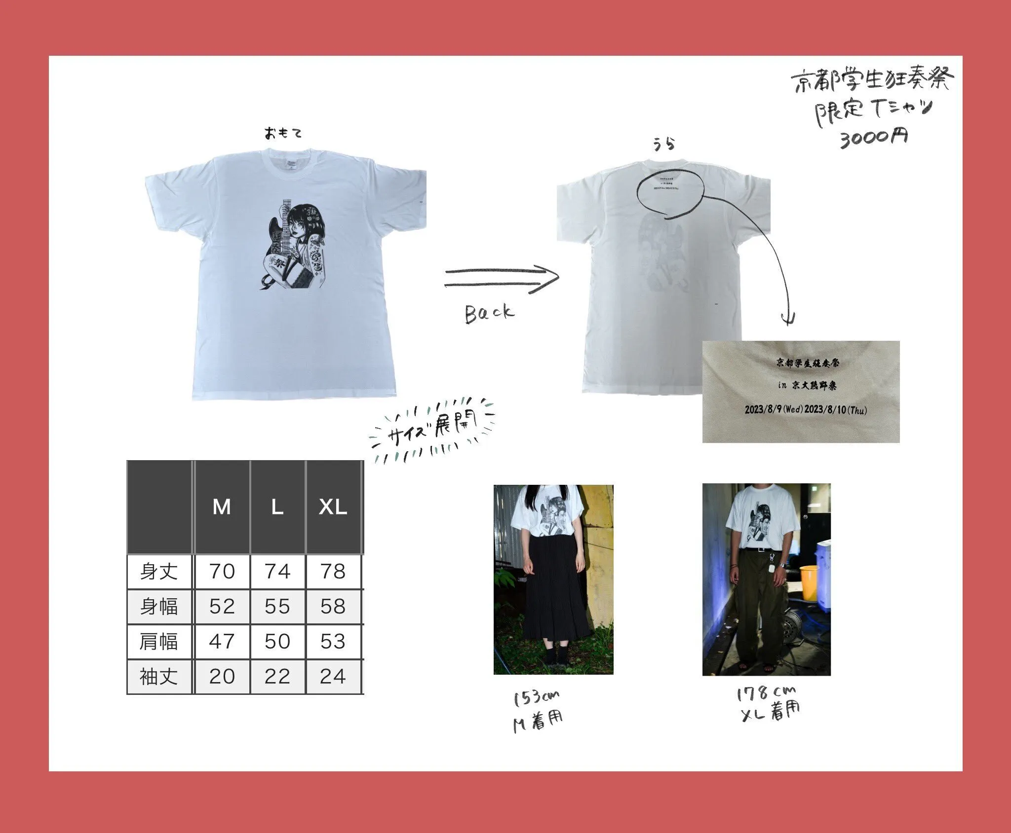 (30,000円と100,000円のリターンについて、リターン詳細欄ではTシャツのサイズを選択する旨記載している一方で、冒頭には「Tシャツ」が記載されていません。これは記載のし忘れでありTシャツもリターンに含まれます。誤解を招くような記載となってしまっていることをお詫び申し上げます)