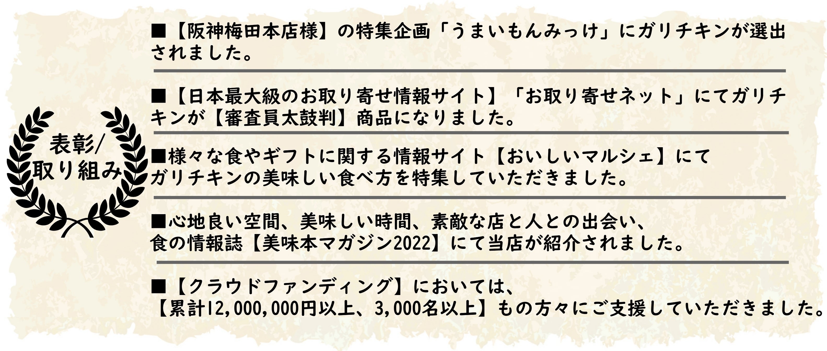 「ガリチキン」とは、当店の人気商品「チキンのガーリックオイル漬け」の略称です。