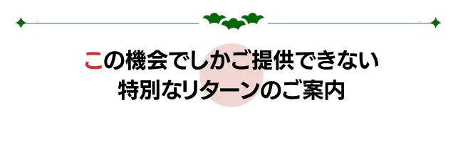 ご支援いただいた方のために、この機会でしかご提供できない、多くの種類のリターンをご用意いたしました。