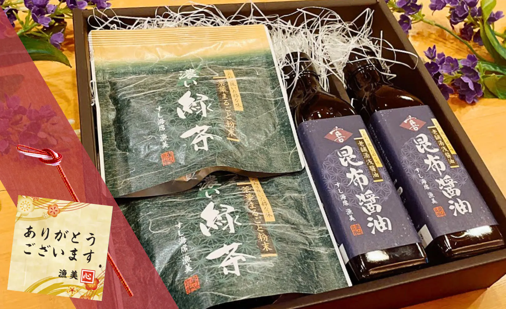 ご存じの通り、醤油や緑茶商品は広く一般的に行き渡っていますが、漁美の実店舗で使っている醤油と緑茶(あがり)を通販でお届けしようと決意しました。