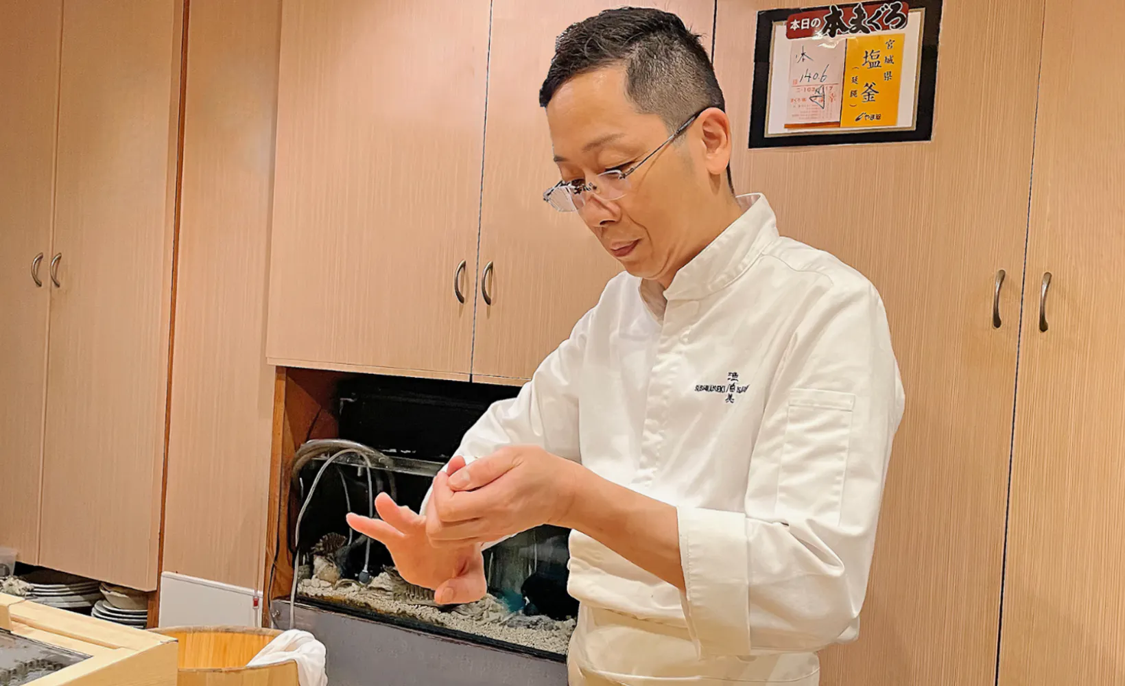 大将が寿司職人の体験の指導をします。経験者向け・未経験者向けのリターンがございます。