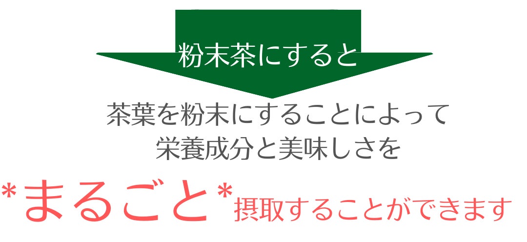 一般的に販売されているパウダー粉末茶も、その粉茶を粉末にしたものが多く、溶けやすいように造粒されているものも多く、デキストリンや砂糖など茶葉以外成分が混ざっています。当店の緑茶は、茶葉100%のやぶきた品種で色々な茶葉を独自にブレンドした、深蒸し製造(蒸し時間90秒位)の一番茶のみを使用しています。