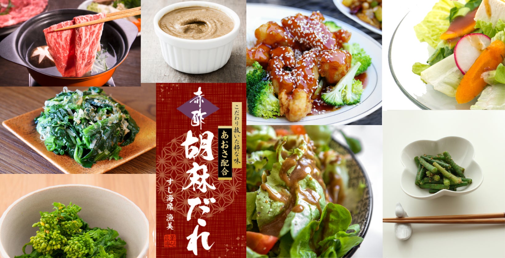 コクと旨みを胡麻の風味が引き立て、隠し味の赤酢とあおさ海苔の香り豊かな風味とまろやかな酸味がさらに深い味わいを演出します。
