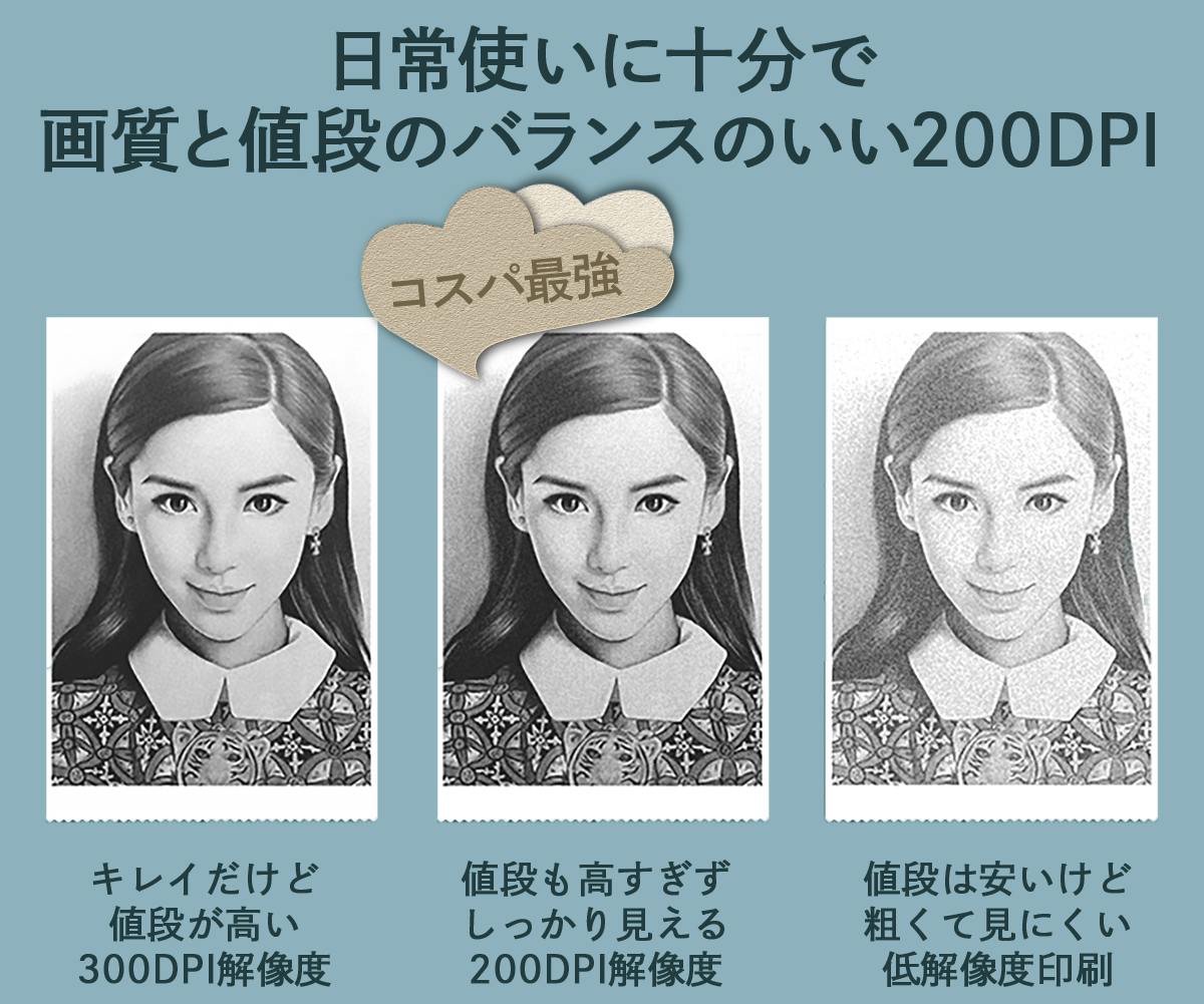 普段使いするのには十分キレイな印刷精度ながらお手頃価格な200DPIを採用!