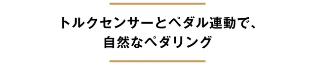 トルクセンサーが駆動力とスピードを感知。電動アシストのパワーが自動で調整され、自然で軽快なペダリングが可能です。