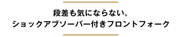 フロントサスペンションが路面からのショックを吸収。未舗装路でも体への衝撃が減り、乗り心地良く、負担が軽減されます。段差も気になりません。