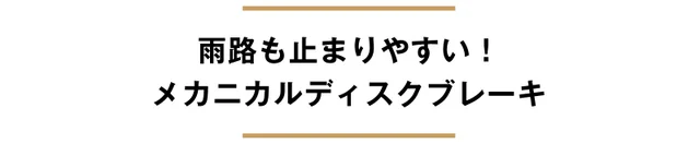 メカニカルディスクブレーキを採用。自動車やオートバイのブレーキと同じ構造で、滑りやすい雨路でも止まりやすくなっています。