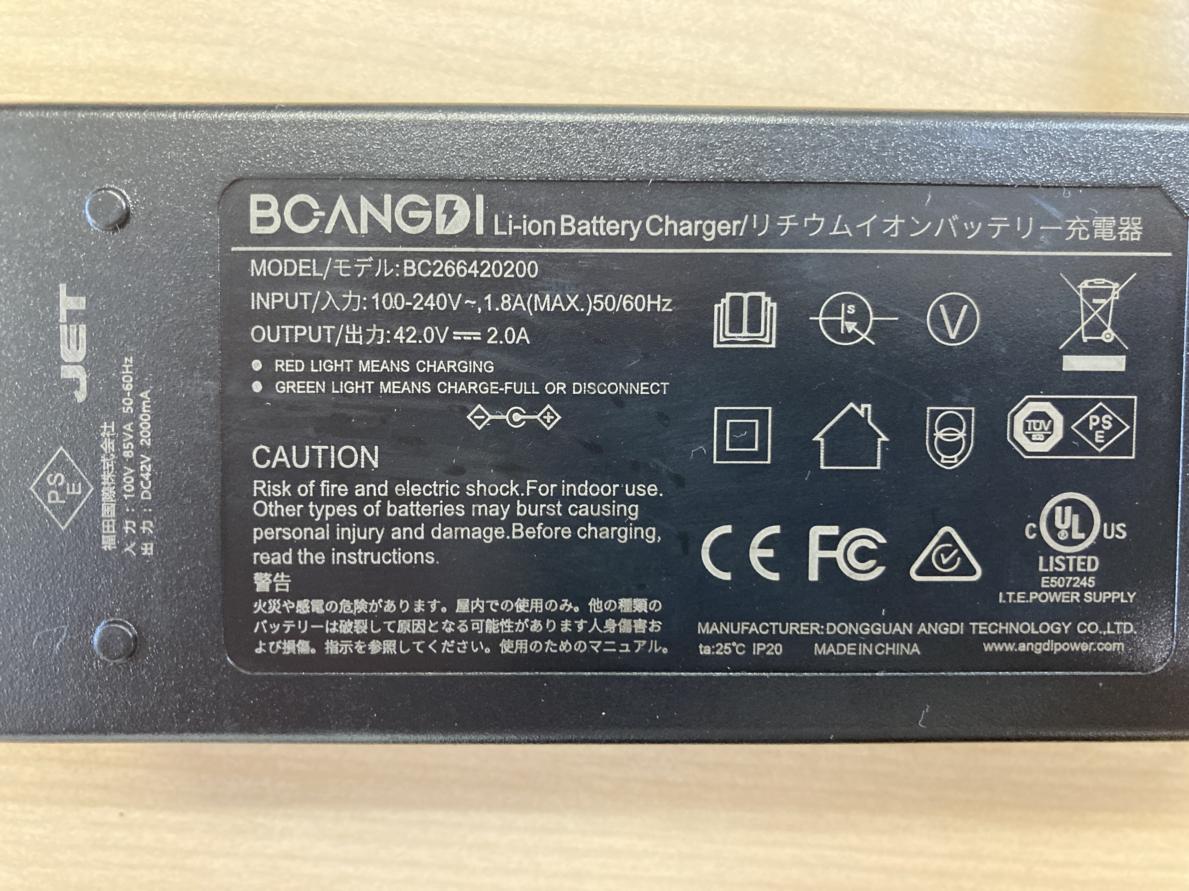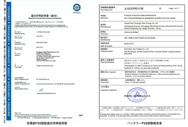 ※バッテリーと充電器にPSEマーク記載済みです。