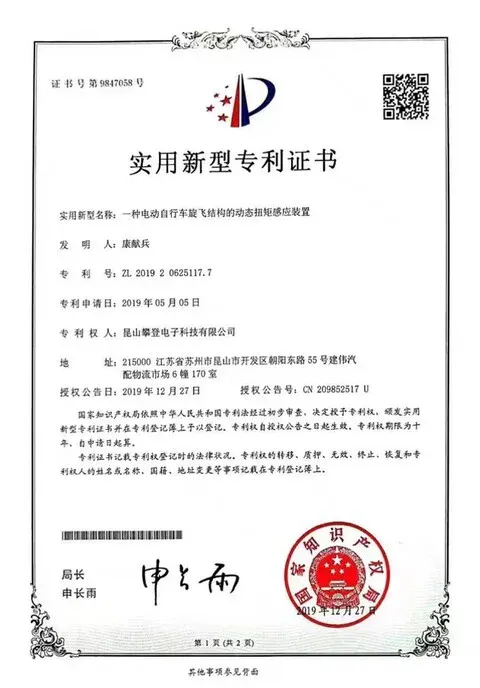 新技術は中国で実用新案権を取得