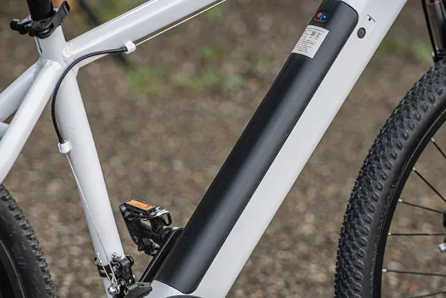バッテリーはダウンチューブ内蔵。電動アシスト自転車であることを忘れさせる、シンプルでスタイリッシュなデザインです。