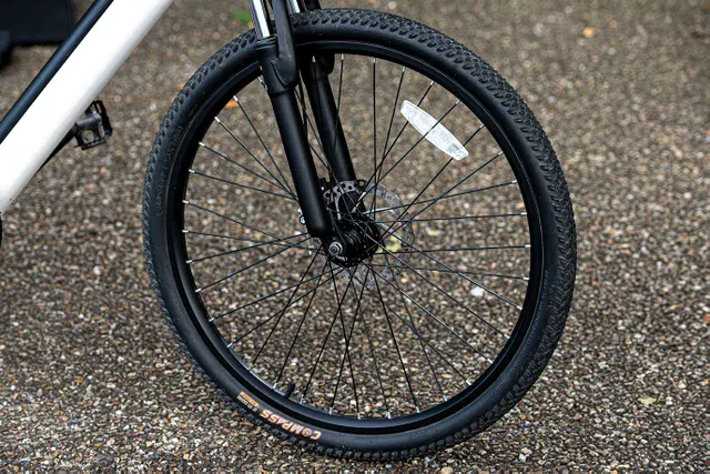 エアボリュームのあるワイドタイヤを採用。雨路の滑りやすい路面や凸凹道も軽快に走行できます。