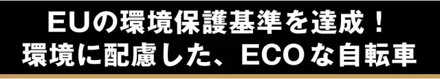 自転車の部品は、EUの環境保護基準「RoHS」を100%満たした部材を使用。環境に配慮した、ECOな自転車です。