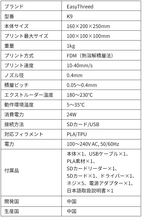 そんな既存の概念を一蹴するのが、3Dプリンター「EasyThreed K9」。