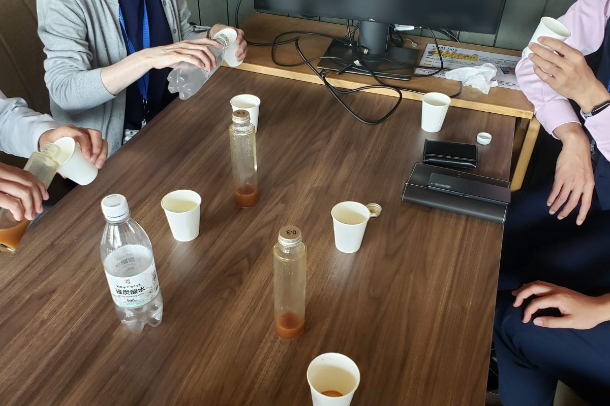▼日本振興企画チームメンバーの試飲打合せシーン