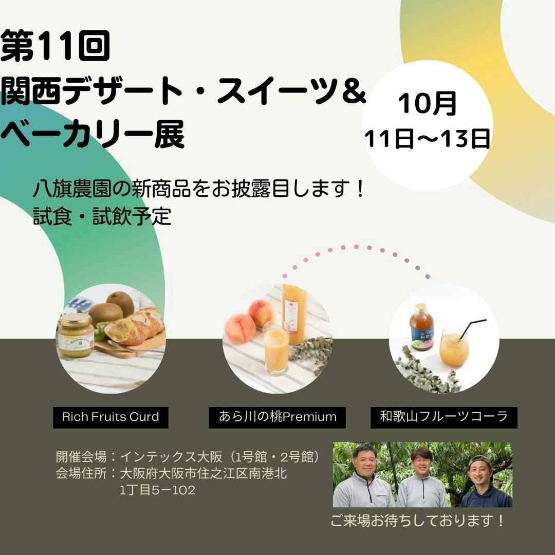 2023/08/29 14:36皆様こんにちは!この度、八旗農園様と一緒に展示会に出展することが決まりましたのでお知らせ致します。展示会は、関西デザート・スイーツ&ベーカリー展に出展致します。開催期間は10月11日(水)~13日(金)の3日間です。場所は、インテックス大阪1号館・2号館です。私たちのブースは1D-05です。(八旗農園様のブースです。)当日は、試食や試飲を行いますので和歌山フルーツコーラを最速でお試しいただけるのがこの展示会になります!是非、この機会に私たちの展示ブースまでお立ち寄りの程、よろしくお願いします。 もっと見る