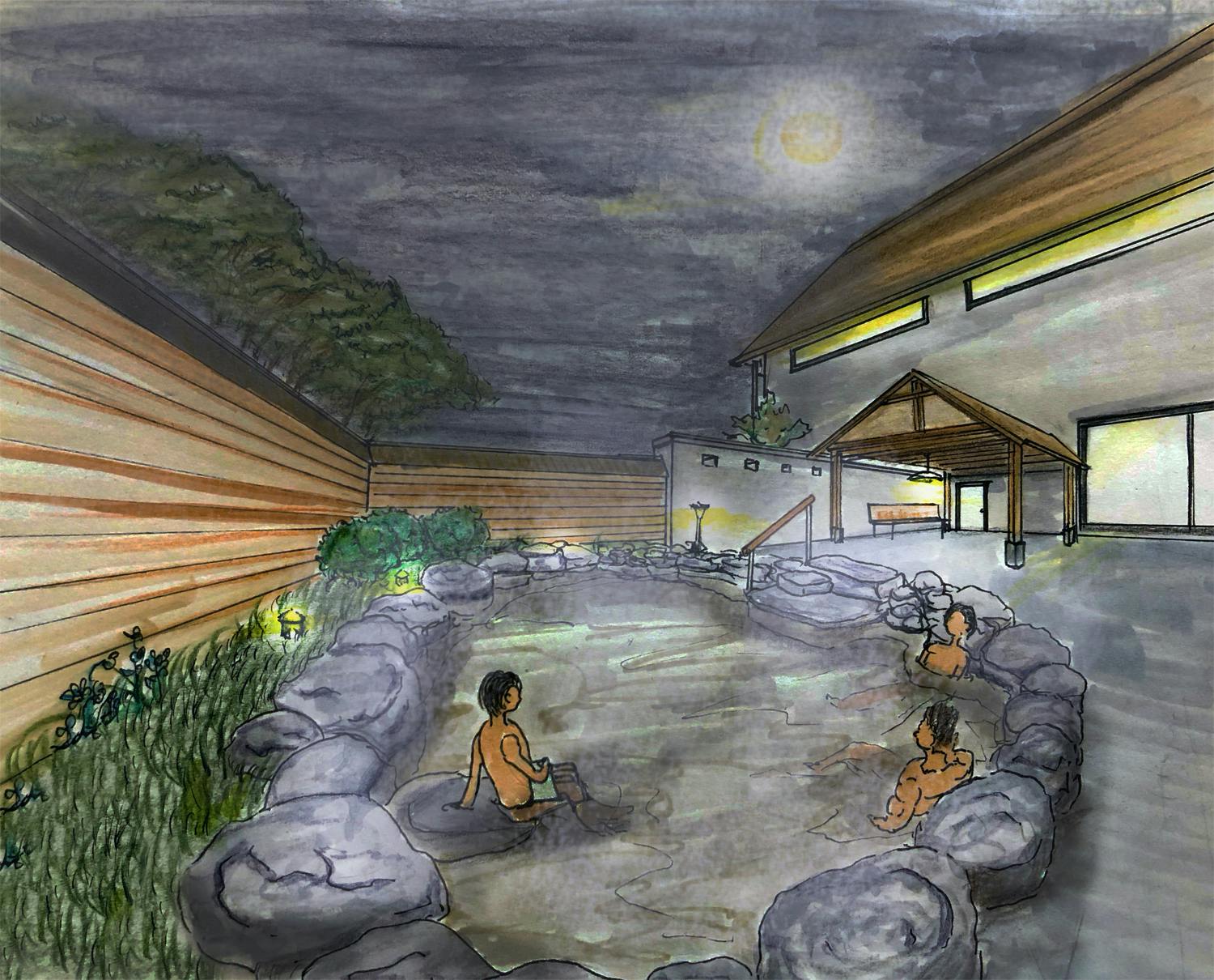 そこで、普段の職場や働く場所を変えることで、オン・オフの切り替えを上手く行うことができるようになるのではないか。素晴らしい泉質の温泉を楽しむことができる非日常の環境で働くことができれば、頭や身体がほぐされ仕事のパフォーマンスや自己管理能力もさらに向上し、この街からクリエイティブな仕事がたくさん生まれるのではないか、と考えるようになりました。