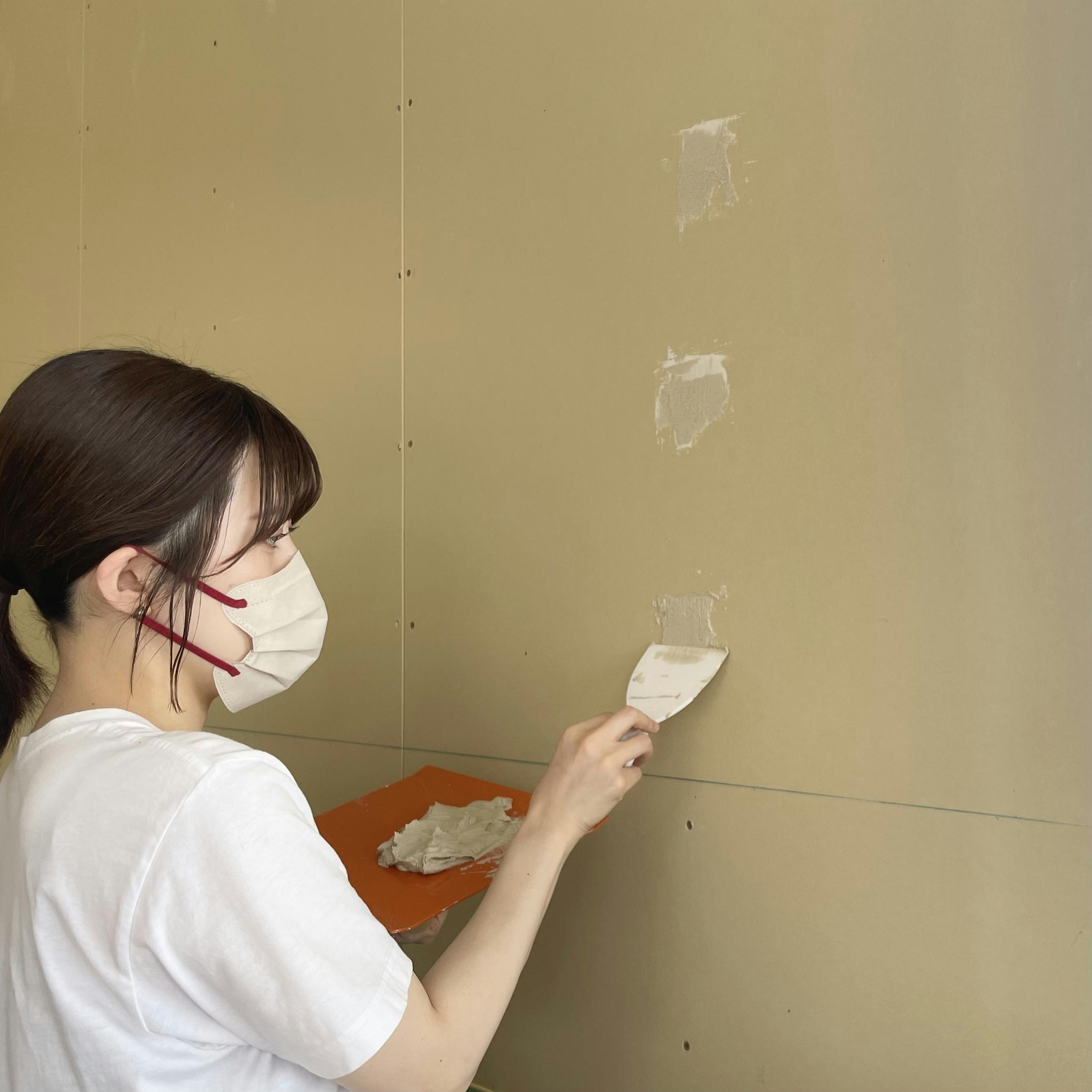 一通りの内装工事が終わり壁塗りの作業が始まりました!まずは石膏ボードの隙間とネジの目をパテで埋めていきます。始めは道具の使い方を探りながらYouTubeの見様見真似で…パテが乾くと思ったより線がでてしまったり厚塗りすぎたり、試行錯誤しながら塗りました。 家族みんな無言で作業に没頭しました(笑)一通りパテが塗れたら次はヤスリがけをします。表面を平にすることと石膏ボードとパテの段差、境目をぼかすようなイメージです。DIYが得意な美容師さんに電動サンダーを借りて(神)全体を大まかにやすります。その後は傷が目立つところを追いパテして、手でやすっての繰り返し。とにかく細かい粉が舞うので全身真っ白になりながら約2週間でここまで完成しました!!beforeafter(補修前)素人なのでやっぱり粗が目立ちますттでもお店への愛情は増し増しでこれはこれで味があっていいかなあと︎☺︎ここから色を塗り足して果たしてどのくらい綺麗になるのか…ドキドキですがペイントも楽しみながら頑張ります!! もっと見る