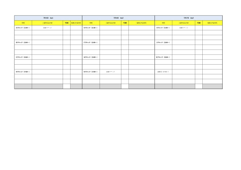 【6月2日現在】7月15日・16日・17日 3日間の全体タイム構成(案)