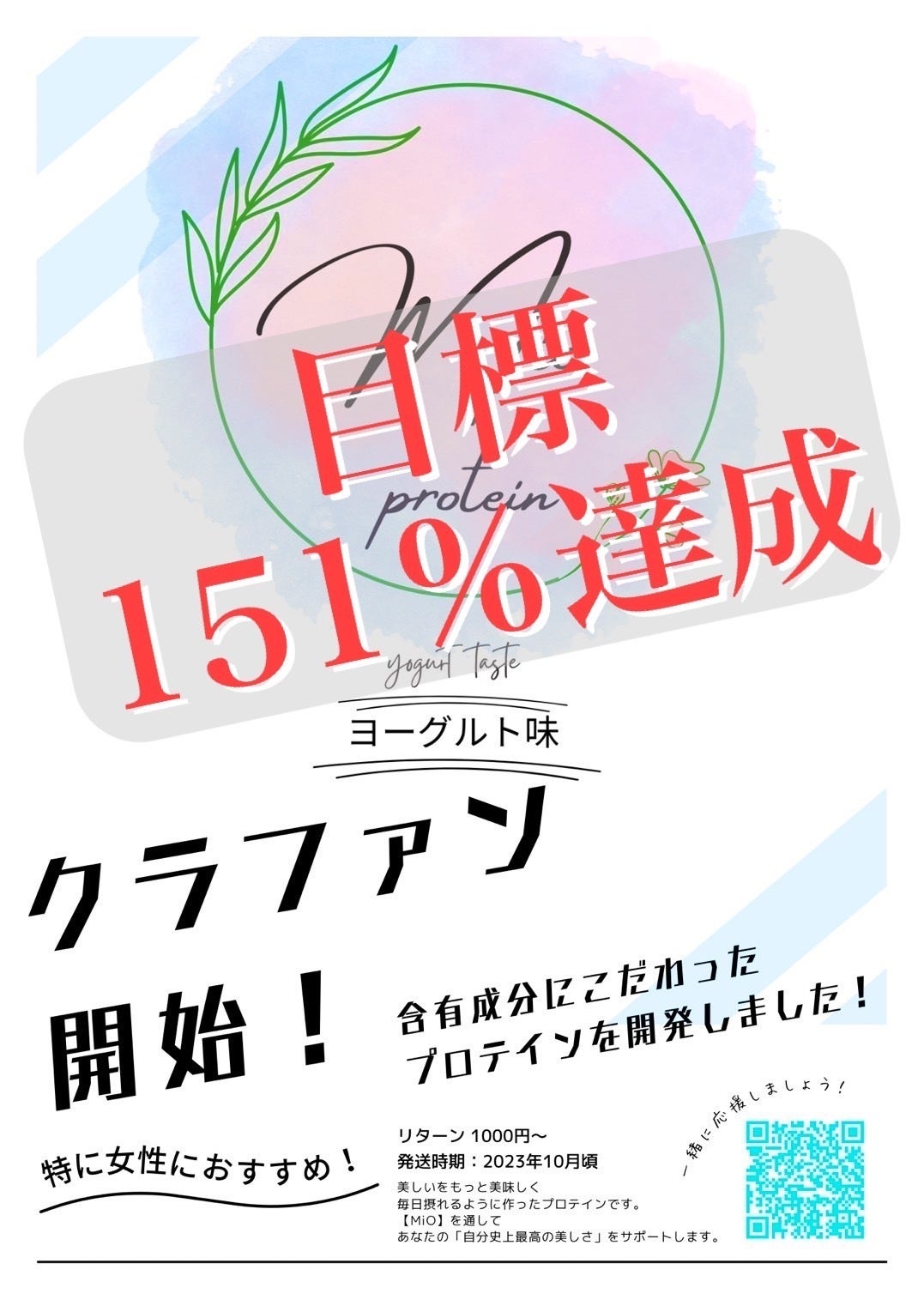 この度、クラウドファンディング『【美しいをもっと美味しく】女性のためのプロテインプロジェクト』へ