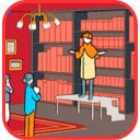 本棚に囲まれるロケーションの対面には