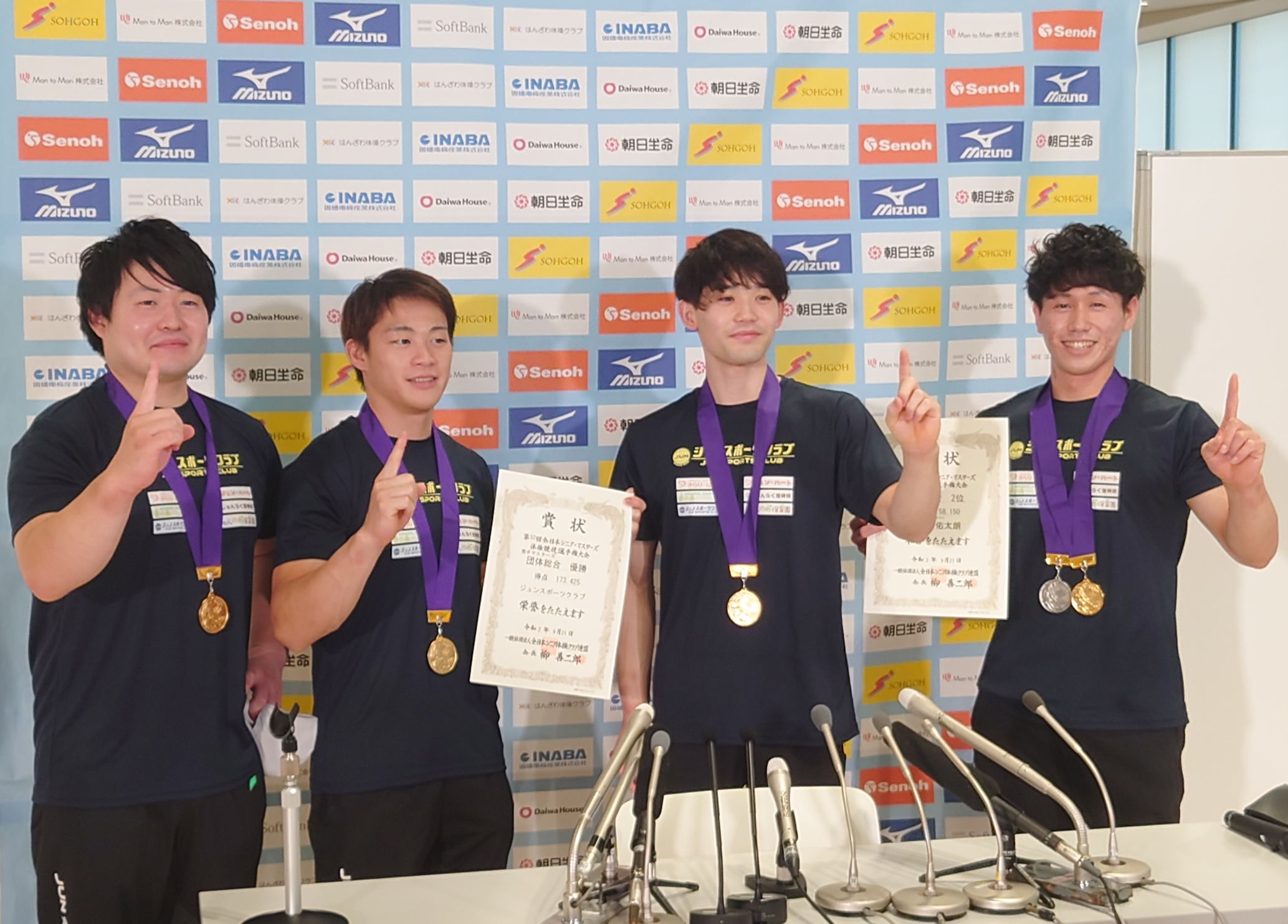 工藤友也[あん馬],中川将径[あん馬],森下廉[跳馬],神本将[平行棒])
