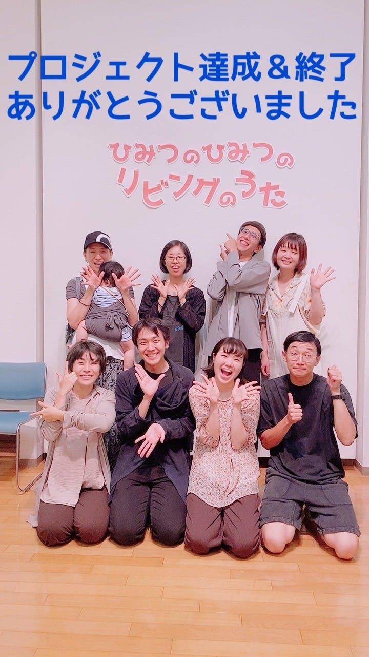2023/07/17 11:07119名の方からご支援いただき、達成することができました!本当に、本当に、ありがとうございました!終了2日前の達成率が60%で、正直金額だけ見たら苦戦して見えていたと思うのですが、ご支援お寄せいただいていたとてもたくさんの方や、ご支援者様からの応援コメントや、応援してくださる方たちの熱い想いをメッセージやツイートから覗かせてもらっていたおかげで、諦めることなく完走することができました。最終日の朝に70%に到達。残り30分で80%、そして残り10分というところで目標金額達成、その後も伸びる!という本当にドラマチックな展開に、メンバー一同騒然としておりました。どう感謝をお伝えすればいいか…言葉が足りません。本当にありがとうございます。この作品を、全国の色んな場所へ、子どもたちから大人たちまであらゆる世代の方にお届けする未来。本番はもちろんリハーサルも含めて、ご参加くださった皆様が、この作品の《体験価値》を実感し、応援してくださったこと、私たちが今まで製作してきた作品の参加者様が、その体験からこのプロジェクトにご賛同くださったこと、まだ私たちの作品を知らない方までが、そんな皆様の応援から、子どもたちの生き生きとした様子から、このプロジェクトを応援してくださったこと、すべてのご縁に、心から感謝いたします。私たちが確信する未来を、こうしてこんなにもたくさんの方に、こんなにも熱い想いで応援していただけたことが、嬉しくてなりません。頂戴いたしました熱い想いを胸に、今後この作品を全国のいろいろな場所に広げていけるよう、お寄せいただきましたご支援をしっかりと活用させていただきます。またどこかで上演が決まった際には、ぜひ遊びにいらしてくださいませ。TwitterやInstagram、公式Webなど、ムケイチョウコクの今後の活動をチェックしていただけましたら嬉しいです。今作品の他、今年の秋冬には都内古民家カフェを一棟貸し切っての新作イマーシブシアターも予定しています。通称は《背徳》。今作品とは打って変わったオトナ向けの耽美な作品となる予定です。続々新情報が公開されてまいりますので、こちらもご期待ください♪また、創作過程をシェアするムケイチョウコクのLINEオープンチャット「connect」では、公式発表前の先行情報公開や、メンバー様限定のイベント情報なども共有しています。ぜひご参加ください。このプロジェクトへのたくさんの応援、熱いご支援を、本当にありがとうございました。ムケイチョウコクと #リビングのうた を、どうぞこれからも温かく見守ってくださいませ。 もっと見る