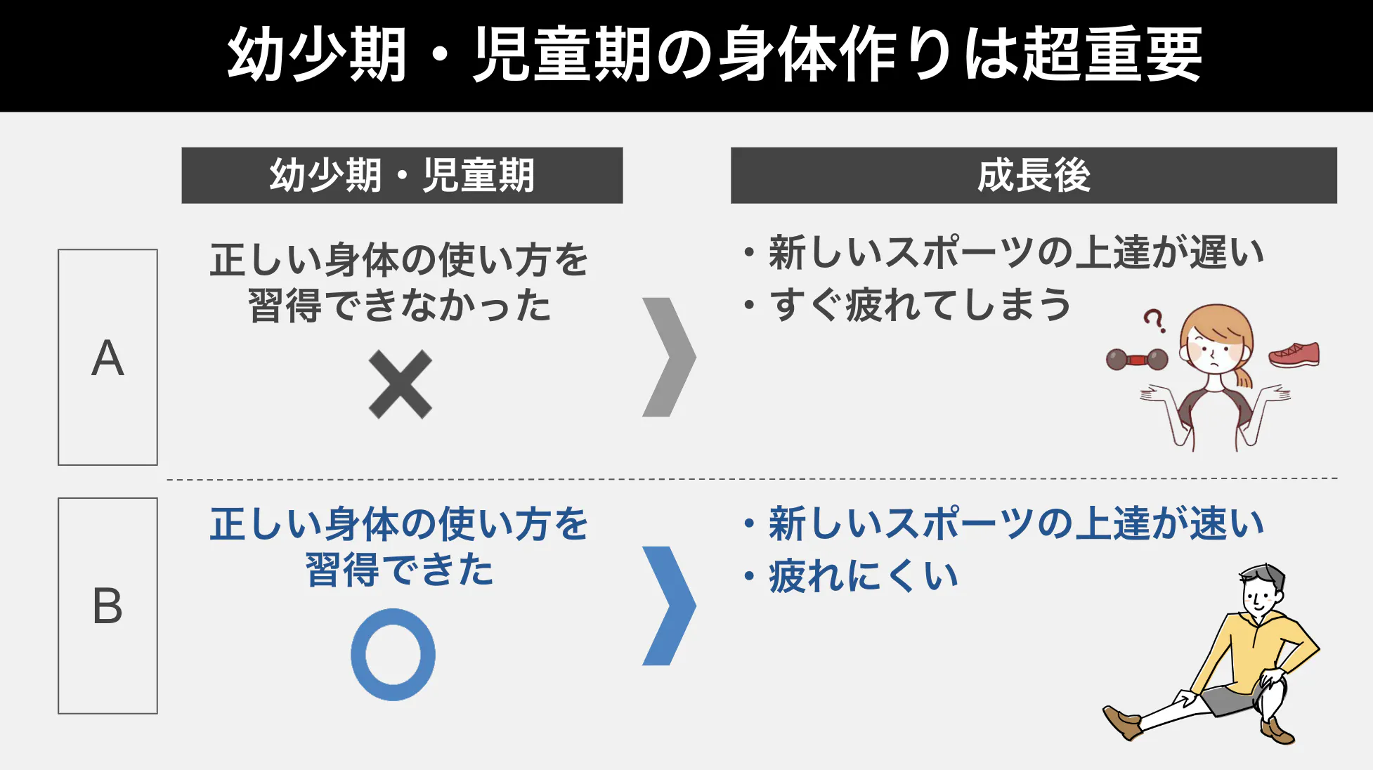 「幼少期・児童期の正しい身体作り無くして、運動/スポーツの上達がありえないから」です。