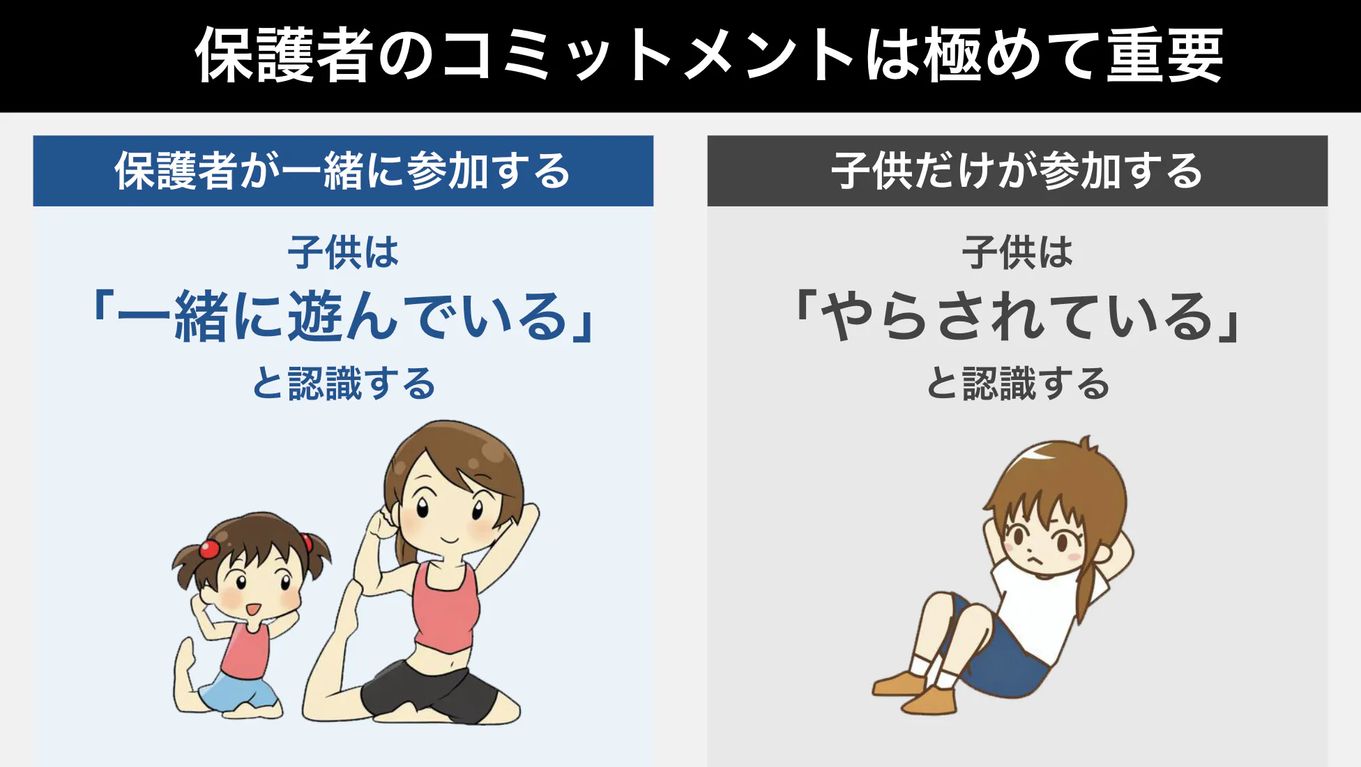 子供の運動教育において、保護者のコミットメントは極めて重要です。