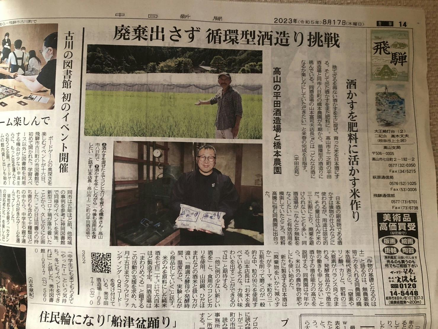 2023/08/22 14:50中日新聞の飛騨版にて、廃棄を出さない循環型の酒造りへのチャレンジを取材していただきました。さすが新聞の記者さん、こちらの伝えたいことを上手に記事にしてくれました。クラファンも残り1ヶ月を切ってきました。皆さんの応援を励みに頑張ります! もっと見る