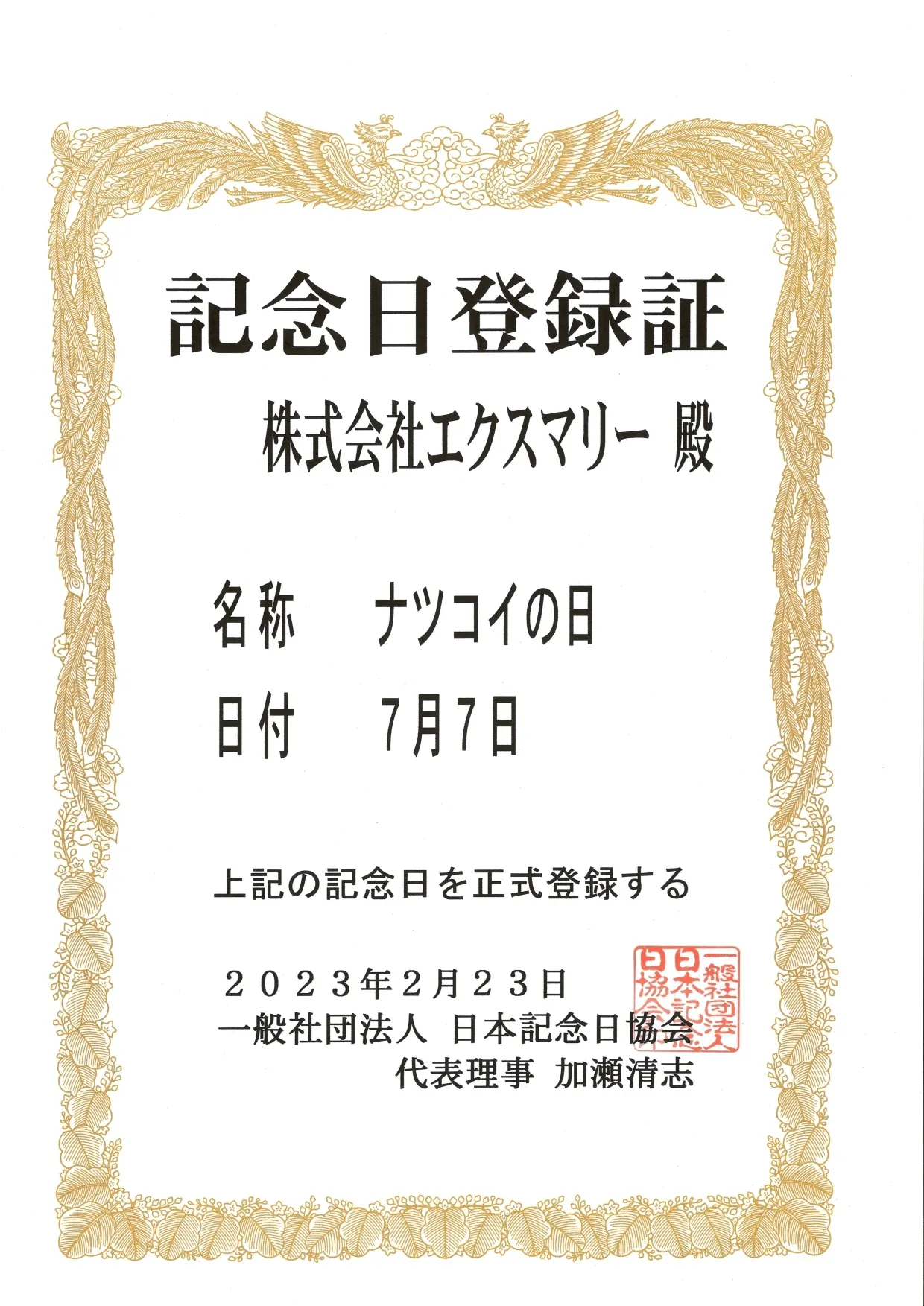 ★その環境創りとして、出会い・恋愛・婚活の記念日、「7/7 ナツコイの日」を制定しました(日本記念日協会認定)。