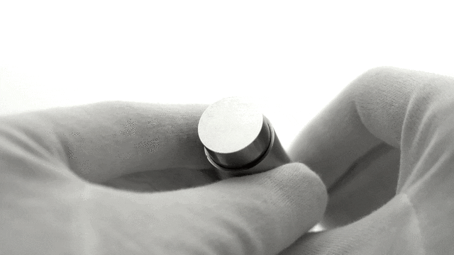 ⑥ 材料に高温の熱を加え材料の硬度を出し、研磨。厚み15.000(±0.001)mmにする