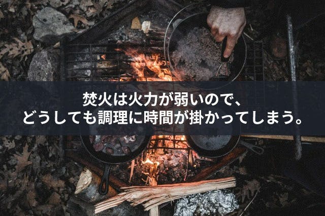 しかし、家のガスコンロと違い焚火は火力が弱いので、どうしても調理に時間がかかってしまいがちです。