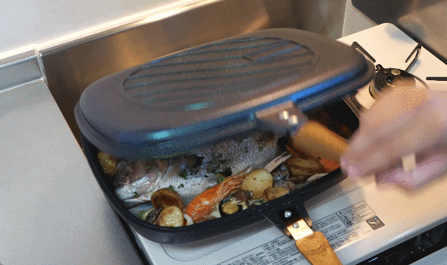 また【DOUBLE GRILL】はシリコンゴムのパッキン付きで閉じた時の密封性が高く、圧力鍋のようにして使えば蒸気が逃げず食材の旨味も凝縮。