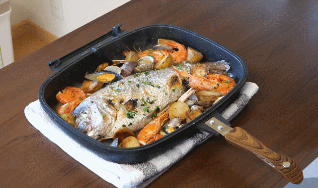 ダブルグリルは素敵なデザインで、料理のみならずキッチンのインテリアにも最適です。もちろん料理に関しては上下のフライパンで旨みを凝縮して閉じ込める事で普通のフライパンより何倍も美味しさが増します。