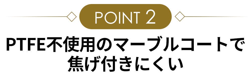マーブルコートは一般的なフッ素樹脂に石粉を混ぜているため、フッ素樹脂だけのノンスティック加工に比べ、表面が硬く耐摩耗性に優れているのも特徴。