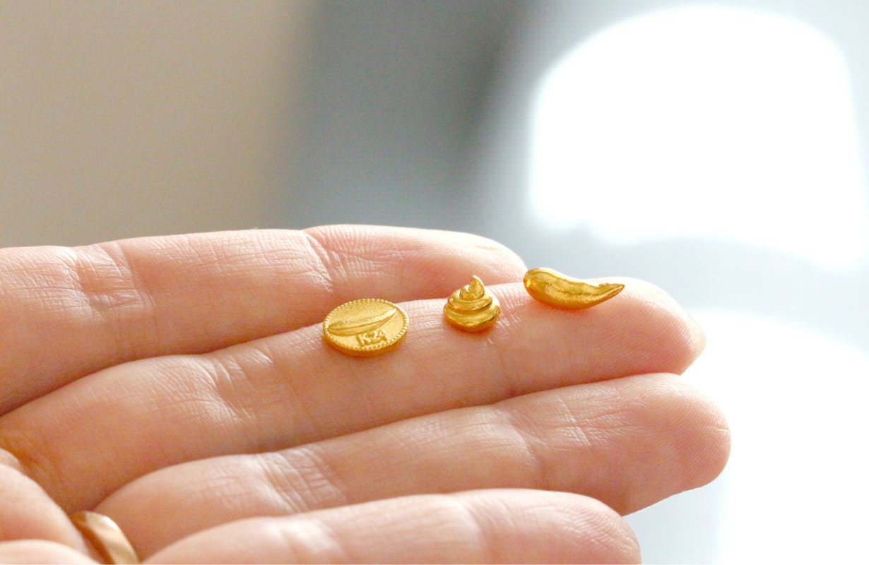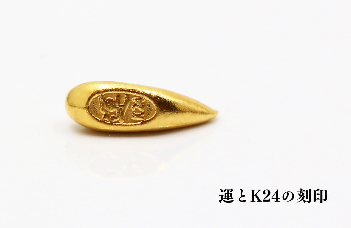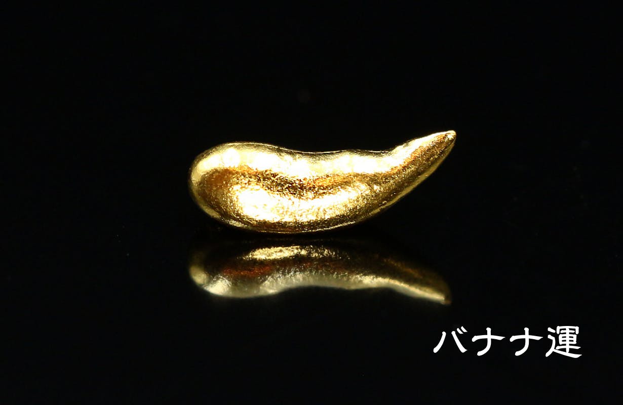 画像:バナナ運(大)(小)ともに裏側に「運」の文字と、純金製の証である「K24」の刻印入り。
